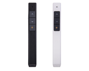 Apuntador láser y controlador para adelantar o atrasar presentaciones digitales, con dispositivo USB remoto para recibir la señal en RF (radio frecuencia). No es necesario apuntar hacia el dispositivo para su funcionamiento. Incluye 1 batería AAA. Presentación: caja en color blanco.