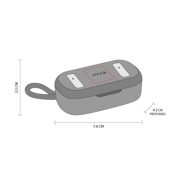 Audífonos bluetooth con base recargable. Sus materiales reciclados lo hacen amigable con el medio ambiente. Controles touch integrados para reproducción de música y función de llamada. Reproducción de música 4 horas aproximadamente. Rango de conexión de 10 metros. Tiempo de carga 1.5 horas. Batería de 40mAh (audífonos) y 400mAh (estuche). Incluye estuche de carga con asa de poliéster y cable con puerto tipo C.