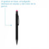 Bolígrafo metálico acabado rubber con detalles en base y tapa color gris.
