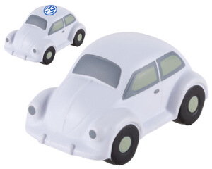 Figura de poliuretano en forma de auto compacto, ventanas, llantas y faros impresos.