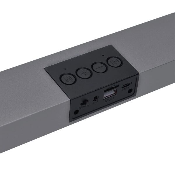 Bocina bluetooth con batería recargable. Tiempo de reproducción de 4 hrs aproximadamente. Controles integrados de volumen y reproducción de audio. Puerto para tarjeta TF. Incluye cable cargador USB.