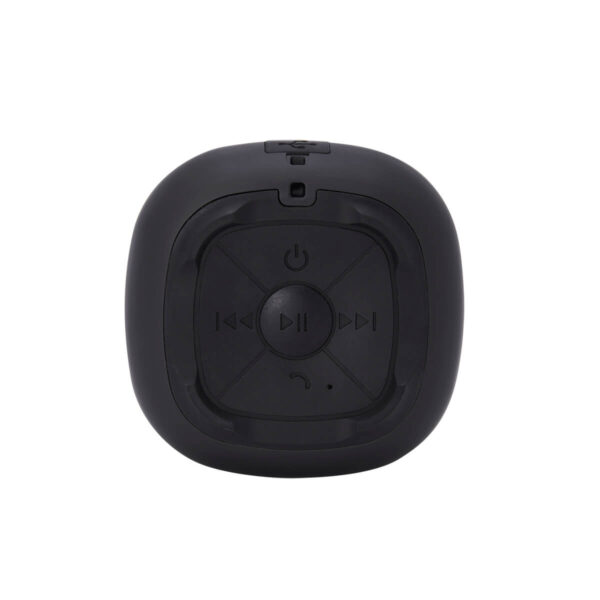 Bocina bluetooth con batería recargable. Tiempo de reproducción de 2 horas aproximadamente. Controles integrados de llamada, volumen y reproducción de audio. Incluye cable cargador USB.