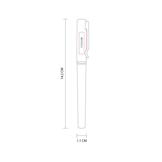 Bolígrafo metálico con tapón. Color en dos tonos de gris. Incluye estuche.