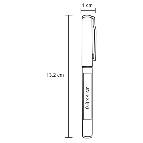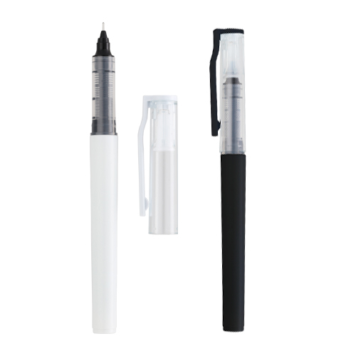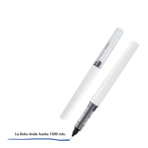 Bolígrafo de plástico con tinta de gel, tapa traslúcida y clip de plástico.