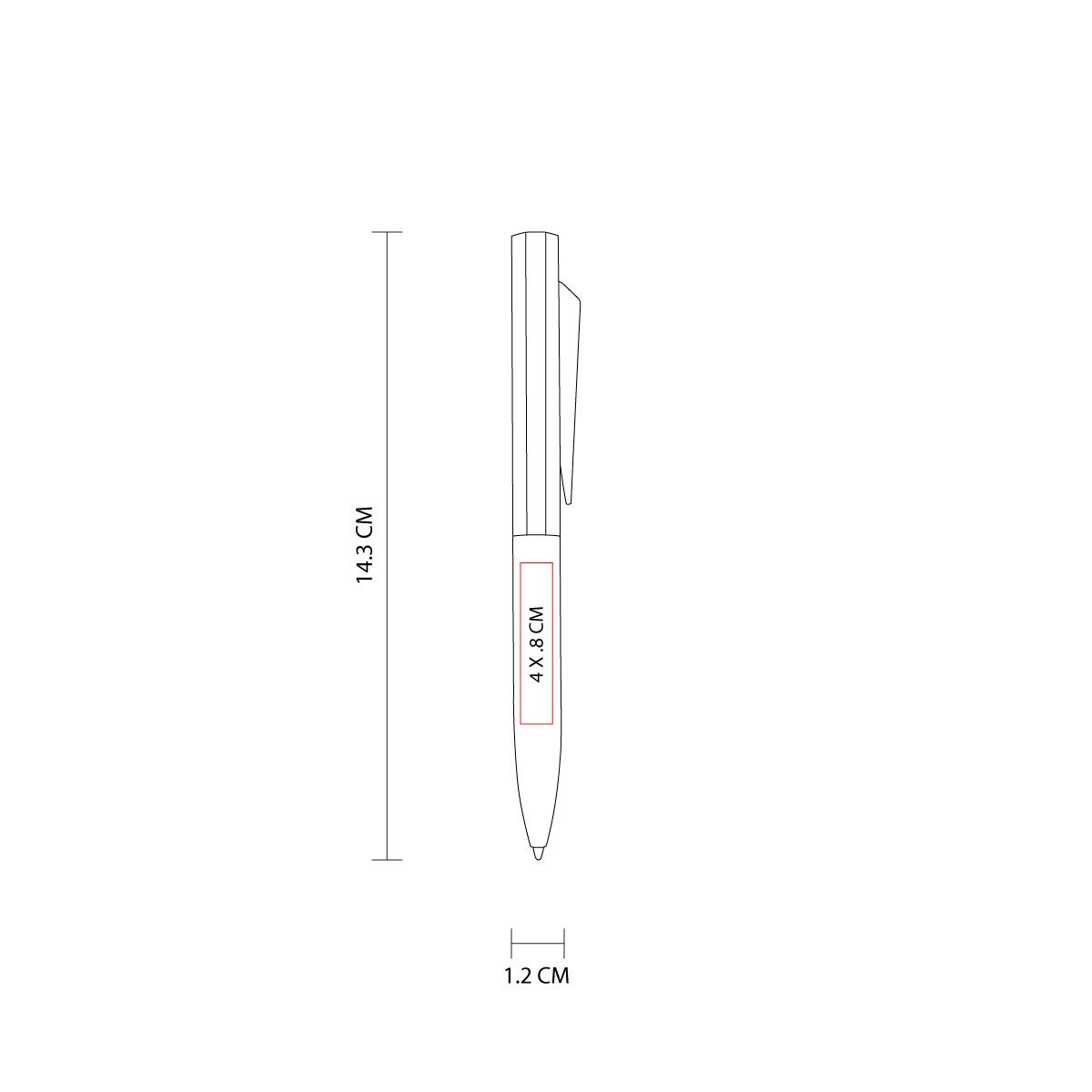 Mecanismo twist. Forma hexagonal en la parte superior del bolígrafo. Incluye estuche.