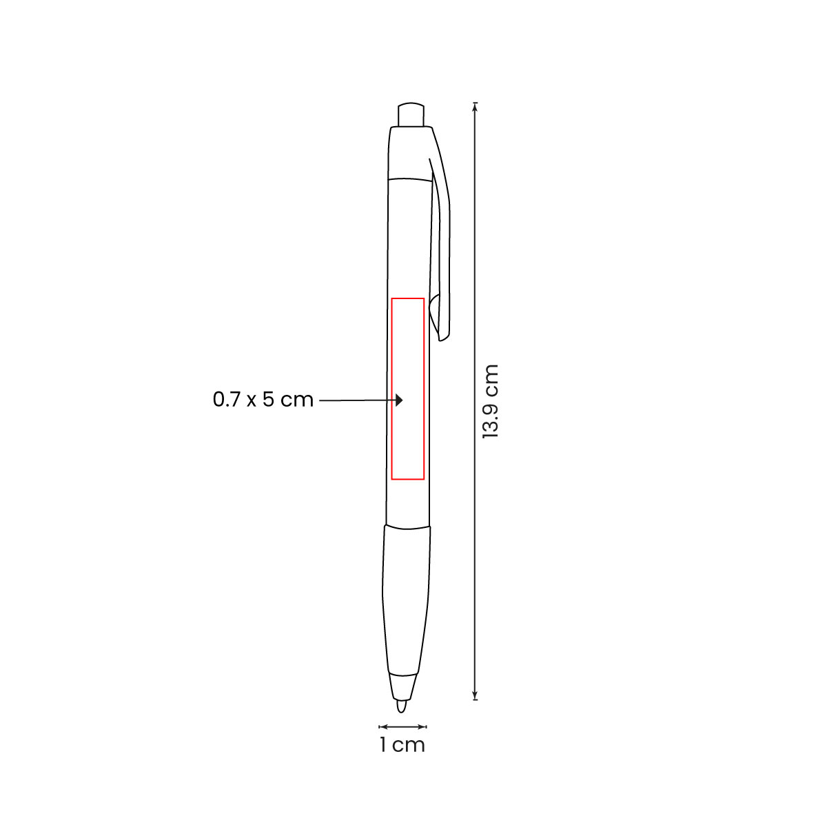 Material eco-friendly a base de fibra de trigo. Incluye grip de silicón antiderrapante. Mecanismo pulsador.