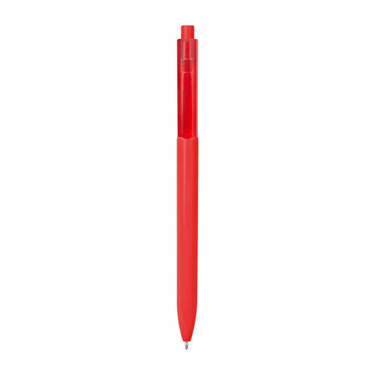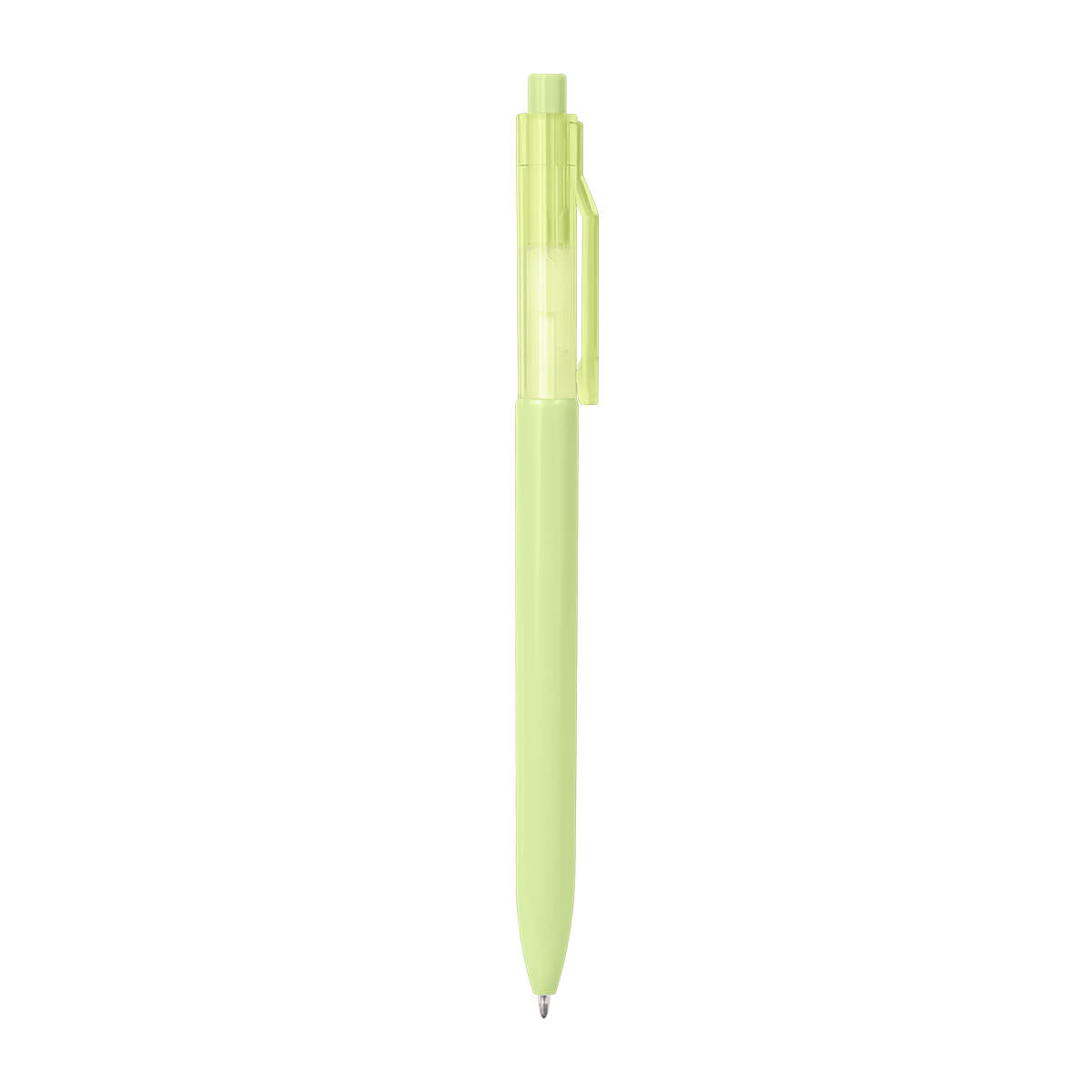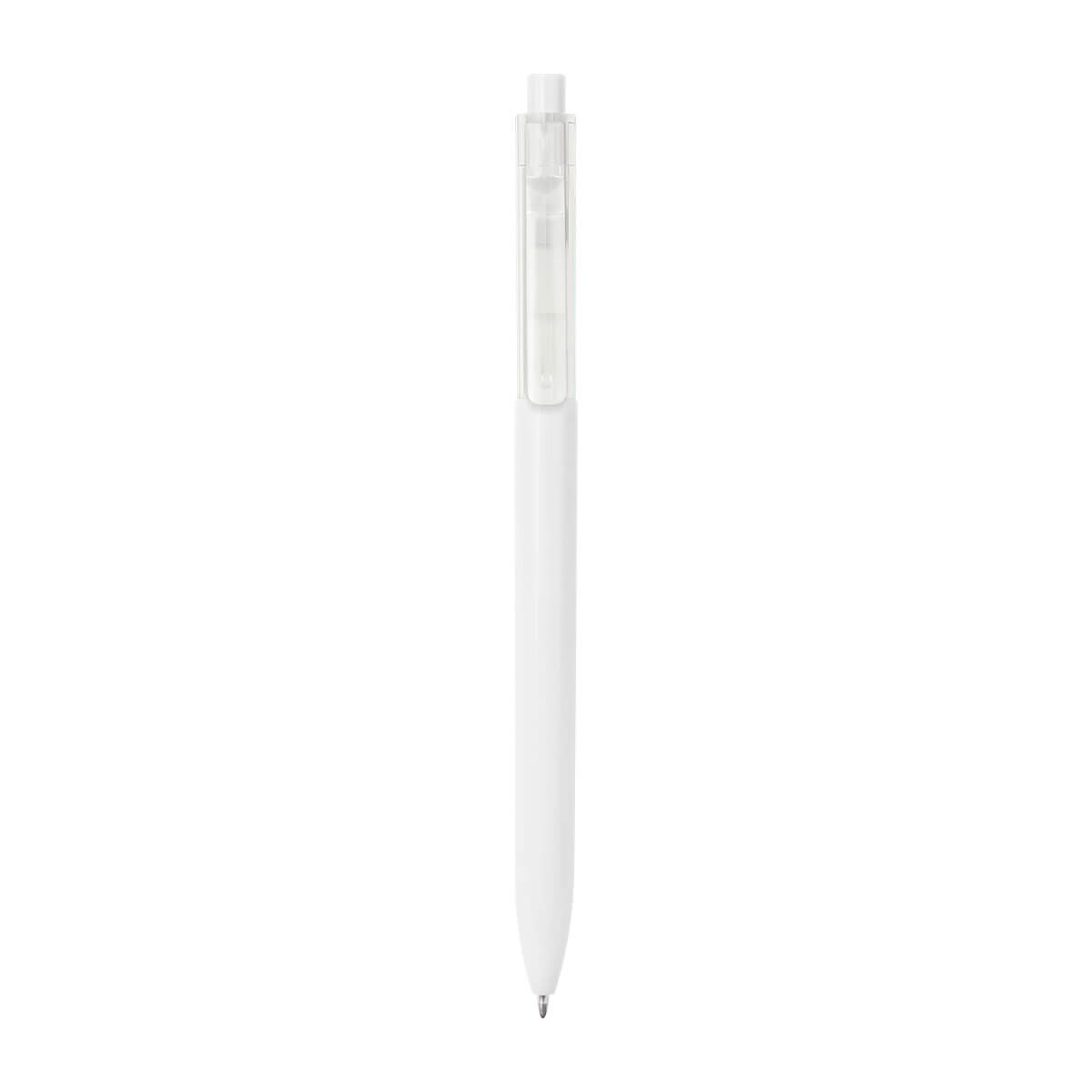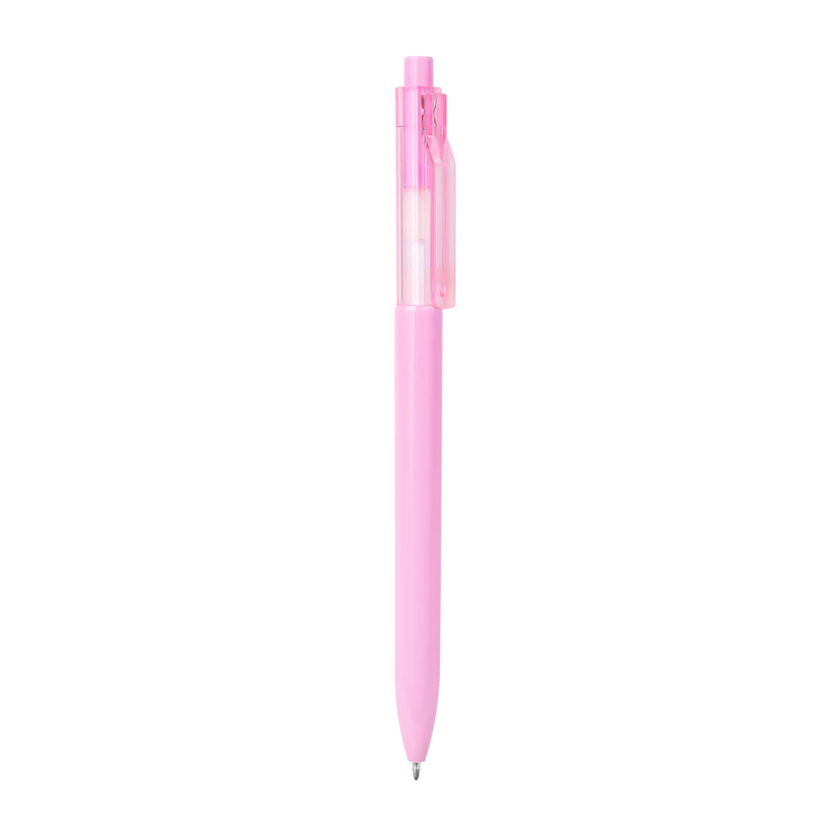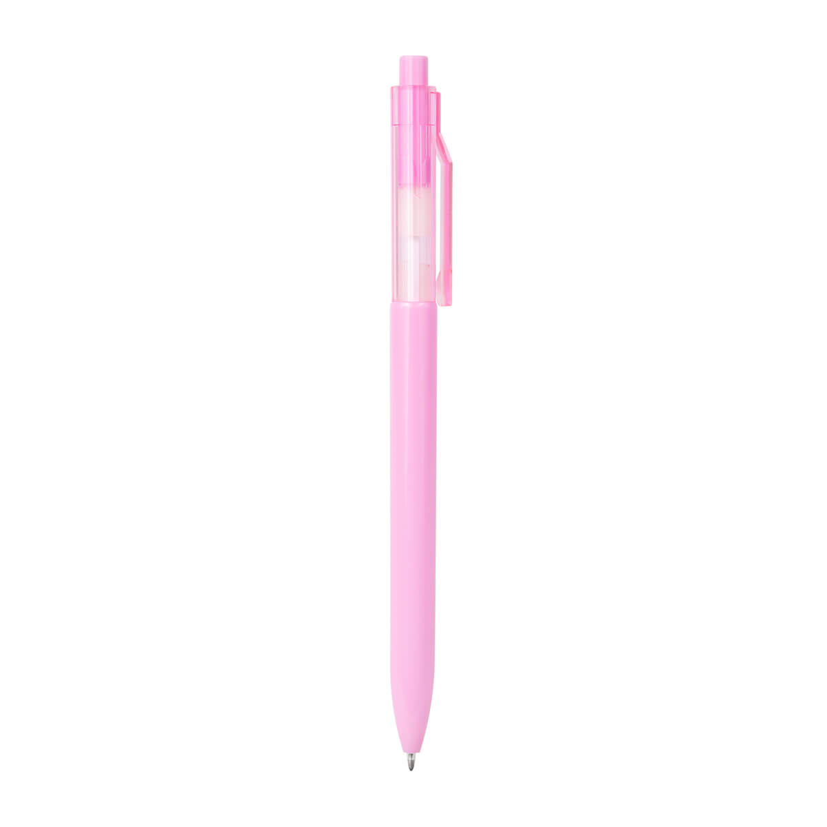 Bolígrafo de plástico con clip transparente. Mecanismo pulsador.