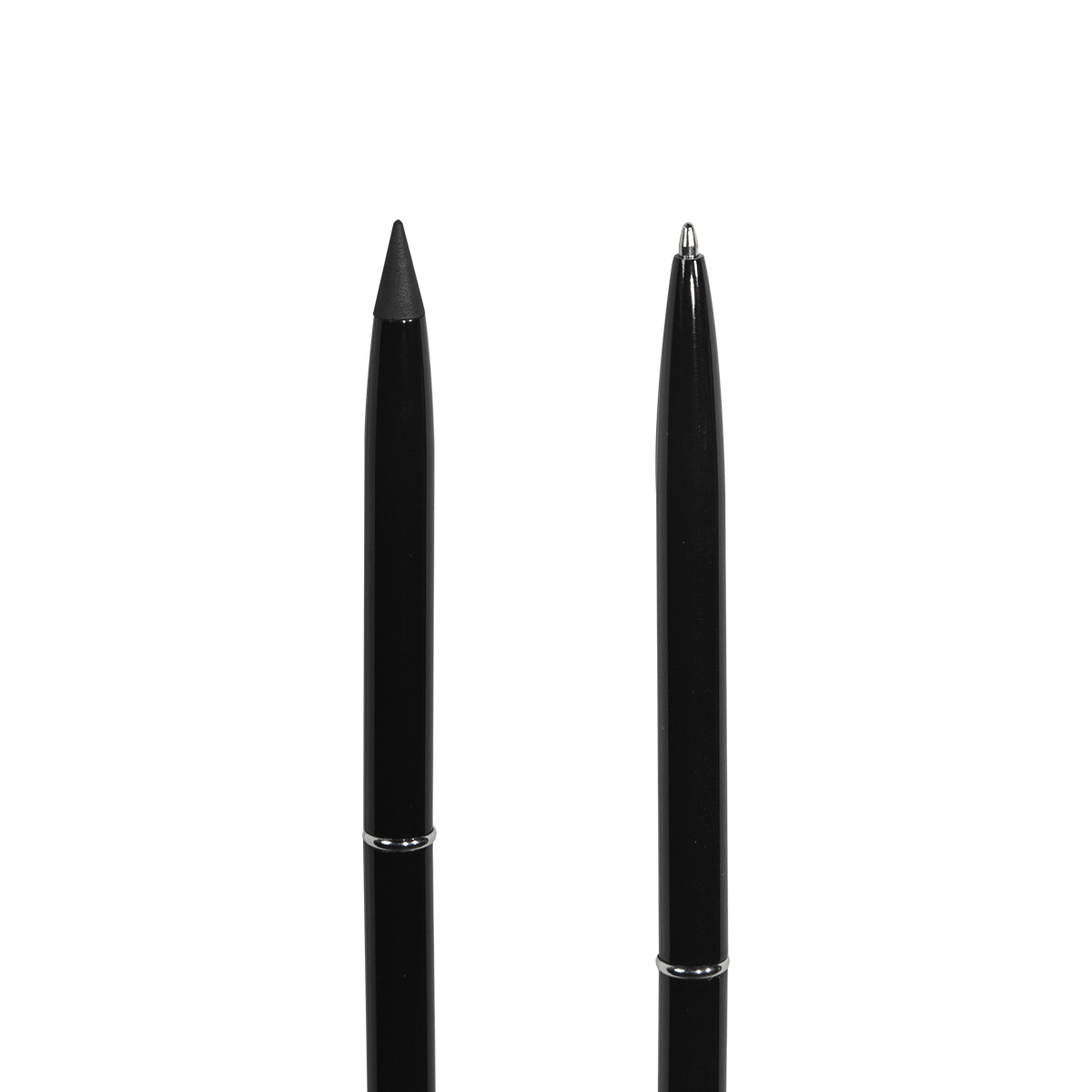 Bolígrafo con función dual, con una punta infinita tipo lápiz. Mecanismo twist. Destaca su peso ligero y su perfil delgado.