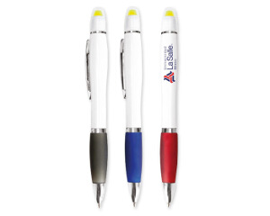 Bolígrafo retráctil, goma de sujeción antideslizante, cuenta con marcador en la parte superior con tapa. Marca-textos color amarillo, ¡en gel que no se corre y no se seca!