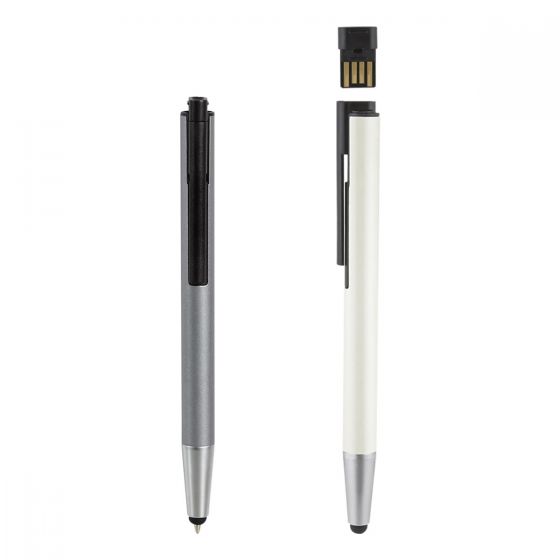Bolígrafo USB de 8 GB y touch screen. Mecanismo pulsador. Incluye estuche.