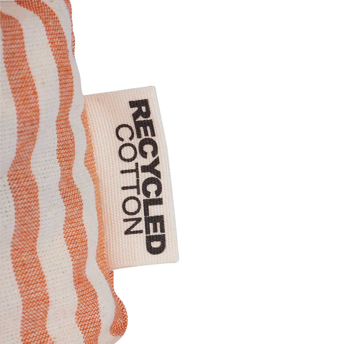 Bolsa ecológica de algodón reciclado. Sin fuelle. Incluye bolsillo frontal. Estampado de rayas.