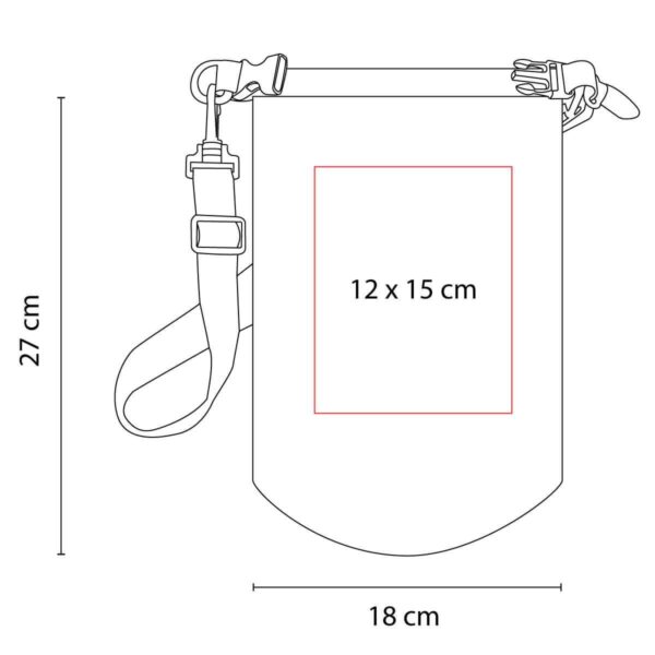 Bolsa seca a prueba de agua para proteger artículos. Capacidad 2 litros. Incluye correa ajustable y gancho.