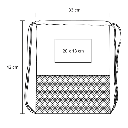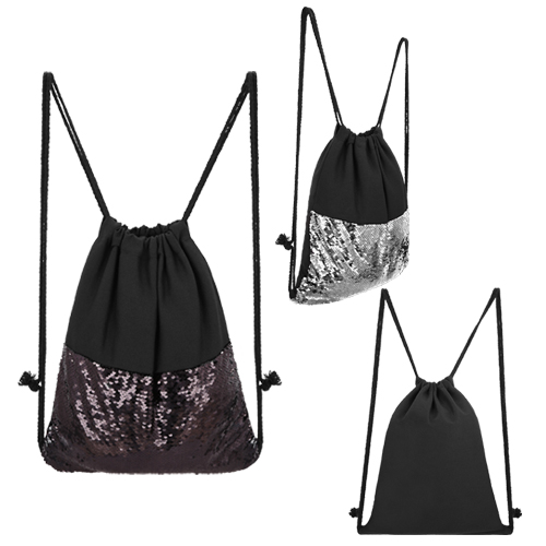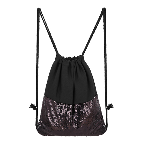 Morral de poliéster cosido, con detalle en lentejuelas doble vista en la parte inferior, con correas ajustables.