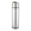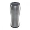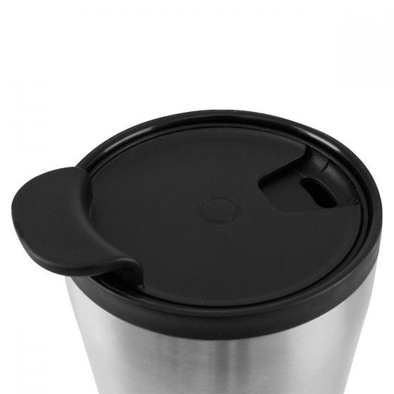 Doble pared. Pared interior plástico, pared exterior acero inoxidable. Base de corcho. Tapa en dos posiciones. No usar en microondas ni lavavajillas.