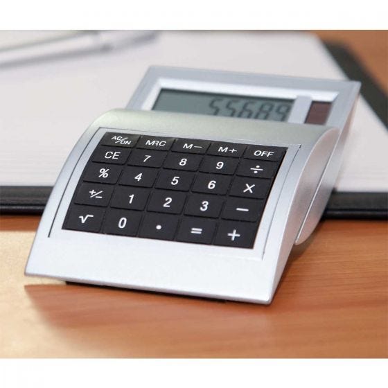 Calculadora Despegable, solar de 8 dígitos con mecanismo deslizable automático para abrir la pantalla.