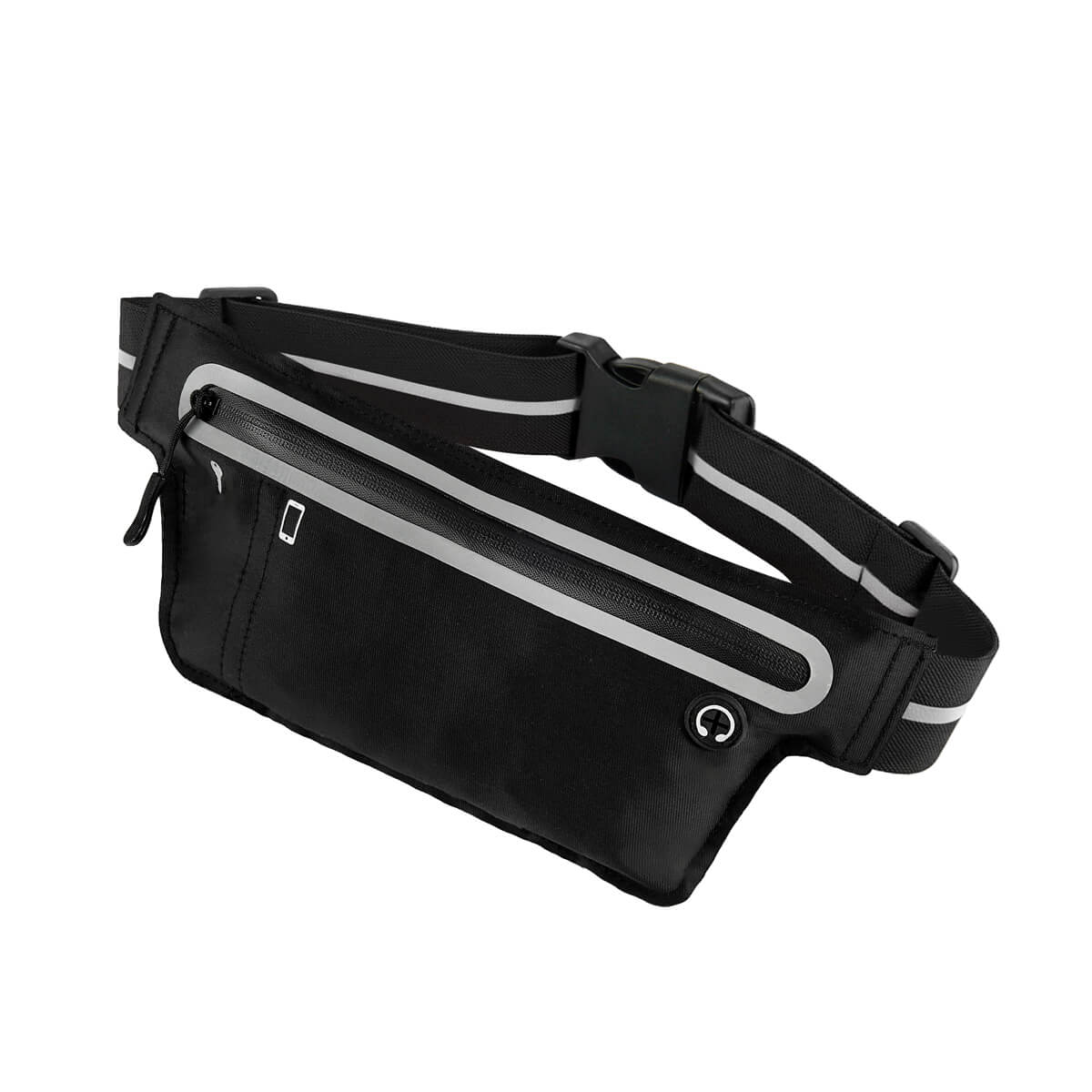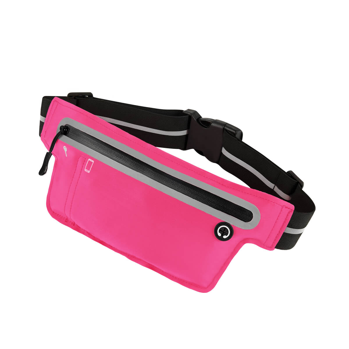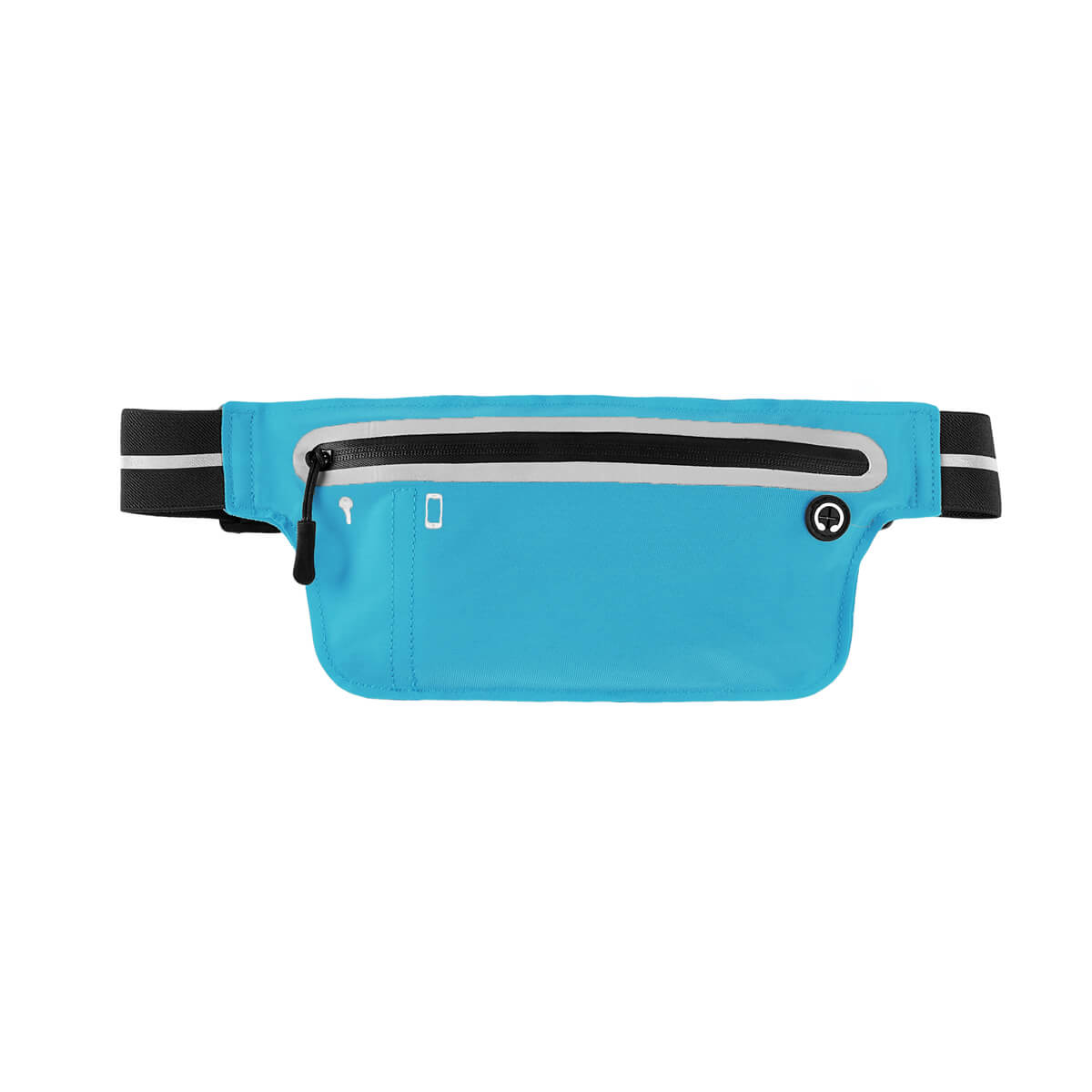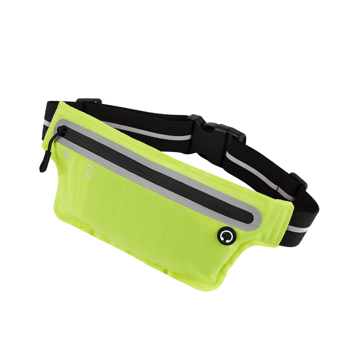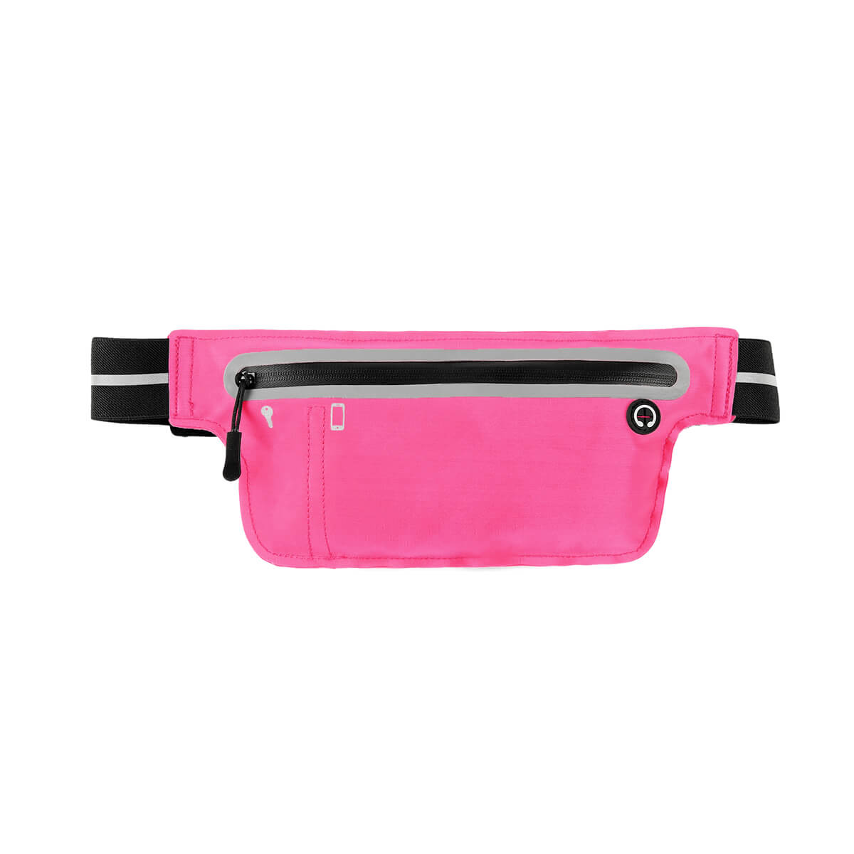 Cangurera deportiva ligera. Incluye interior plastificado. Ofrece resistencia al agua y comodidad en todo momento. Su compartimento con cierre y puller con correa permite guardar lo esencial, mientras que la salida para audífonos con cable te acompaña con música en cada paso. La banda elástica con broche de plástico se adapta fácilmente al cuerpo, y sus detalles reflejantes en cinturón y cuerpo brindan visibilidad extra en condiciones de poca luz.
