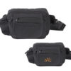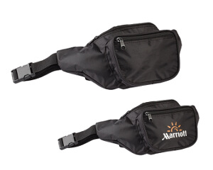Cangurera con dos compartimentos: bolsa con cierre al frente, cinta ajustable a la cintura con seguro de presión.