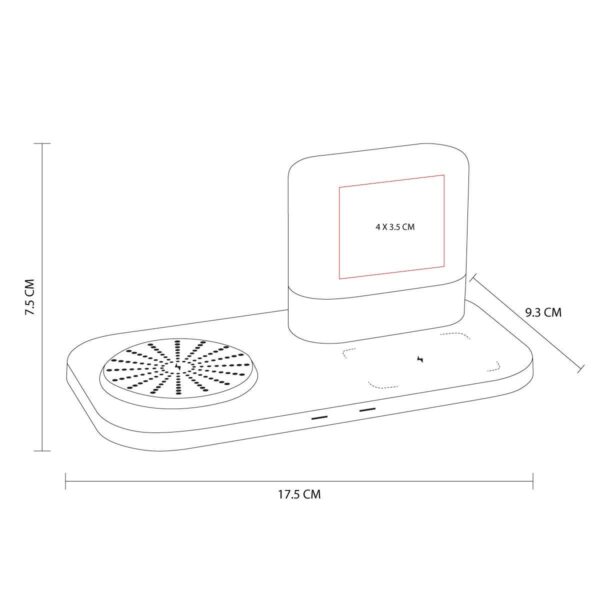 Cargador inalámbrico para smartphone y earbuds. Incluye lámpara touch con 3 diferentes intensidades. Salida USB para conectar otro dispositivo como por ejemplo un smartwatch. Incluye cable auxiliar tipo C y caja individual.