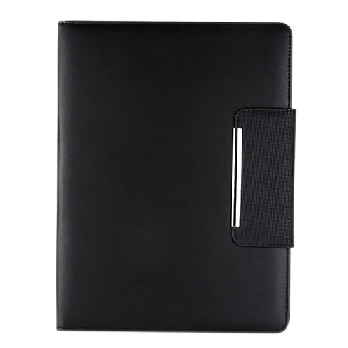 Incluye block de raya tamaño A4 con 20 hojas, elástico para bolígrafo, broche magnético, compartimento para documentos y tarjetas. No incluye bolígrafo.