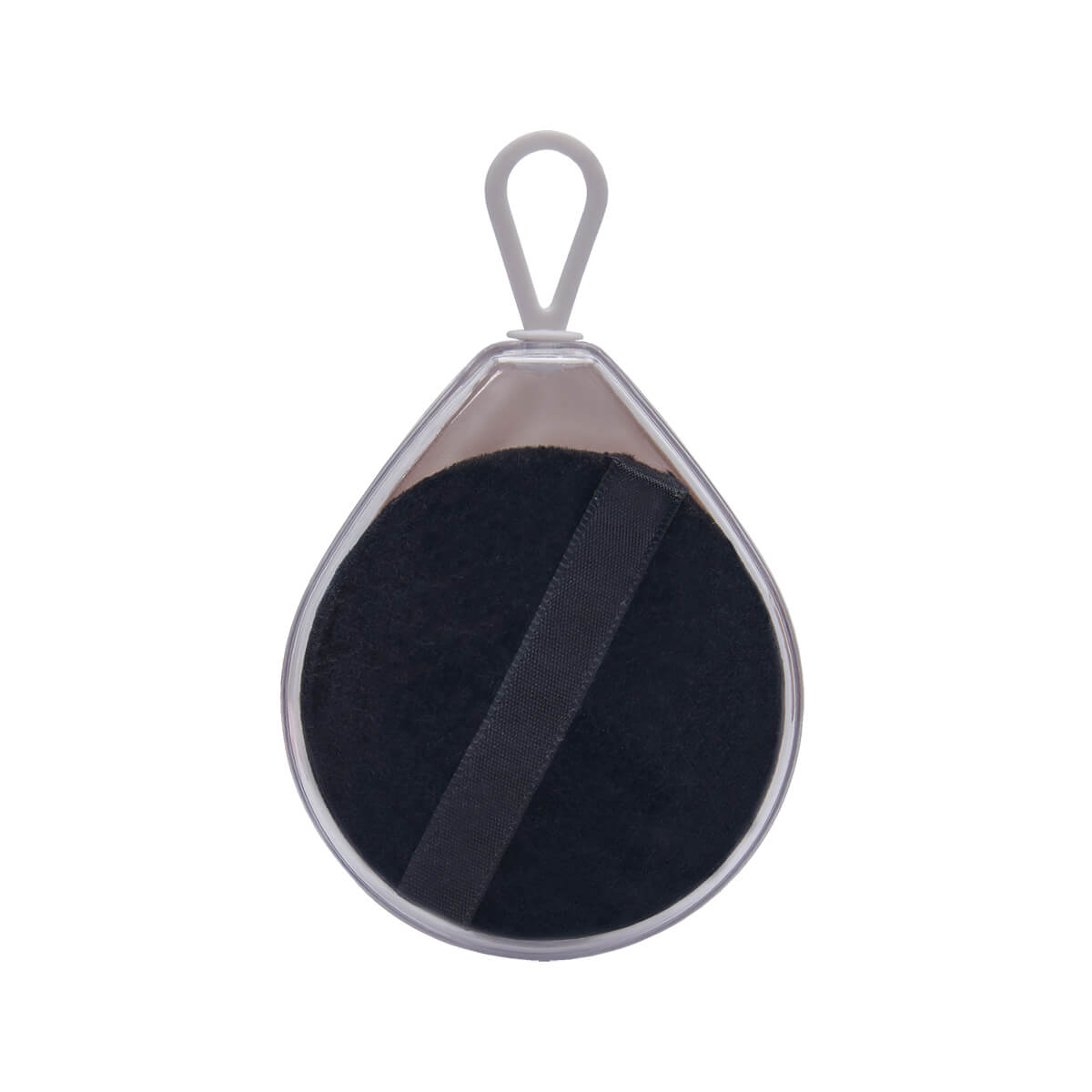 Esponja para aplicar polvos y lograr un maquillaje con acabados mate y una base bien pulida, con tira de listón para una mejor sujeción. Incluye estuche de plástico. Producto lavable.