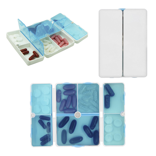 Pastillero de plástico plegable con broche magnético y 8 compartimentos.