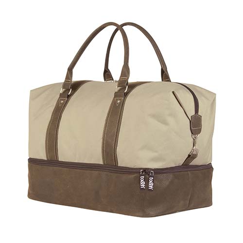 Bolsa principal y compartimento para zapatos.