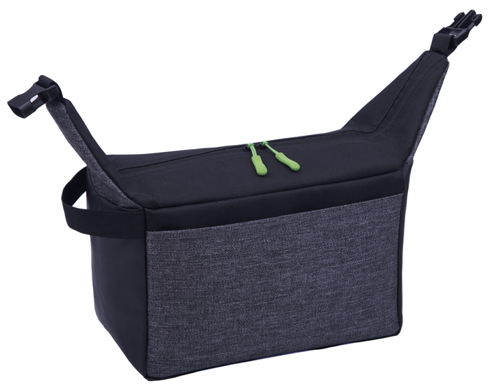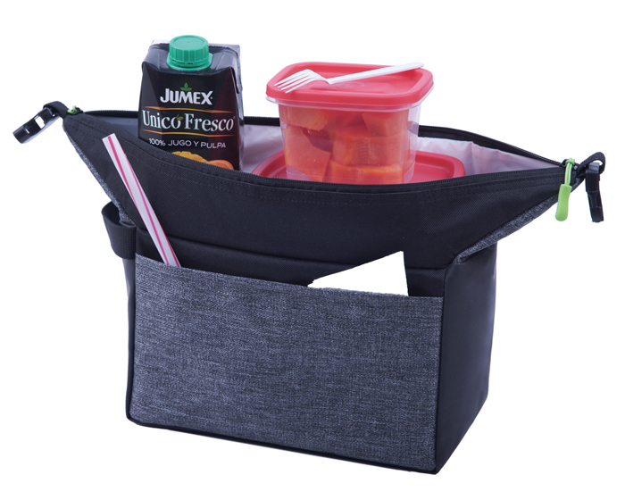 Hielera térmica con interior plastificado, cuenta con dos compartimentos. Asa lateral para fácil agarre. Asa superior con broche. Parte inferior de material repelente al agua. (El cierre modelo A2712 se vende por separado del color de su elección. Este producto requiere 2 cierres.)