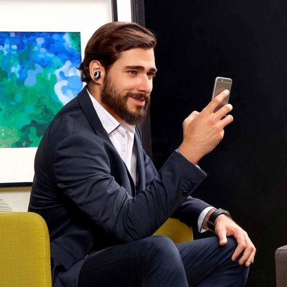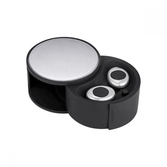 Audífonos bluetooth inalámbricos con batería recargable. Reproducción de música hasta 1.5 hrs aproximadamente. Incluye cable cargador USB y estuche para recargar los audífonos. Función manos libres.