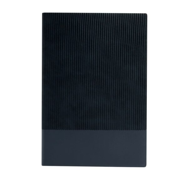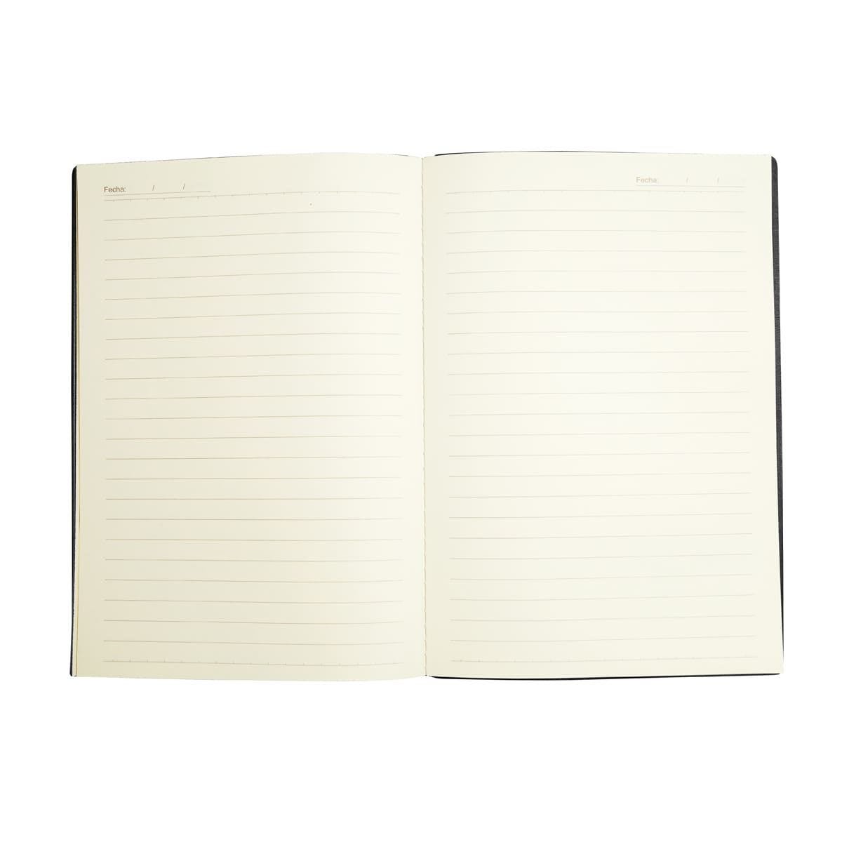 Libreta con 100 hojas de raya. Pasta que combina dos tipos de textura: una suave con líneas verticales y otra lisa. Los bordes de las hojas son del mismo color que la pasta. Cada página está diseñada con un apartado especial para poner la fecha, permitiéndote organizar tus notas y escritos de manera cronológica.