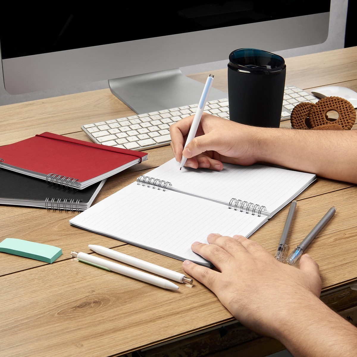 Libreta ecológica con 70 hojas a rayas. Cubierta de cartón. Incluye espiral metálico y elástico para cerrar. Su diseño divide el espiral aportando un toque distintivo de las libretas convencionales. Una elección sostenible que resaltará tu pasión por el medio ambiente.
