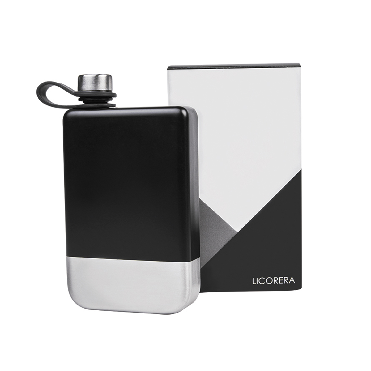 Licorera discreta y ligera con tapa de rosca para evitar derrames. Incluye mini asa de silicón para transportarla fácilmente.