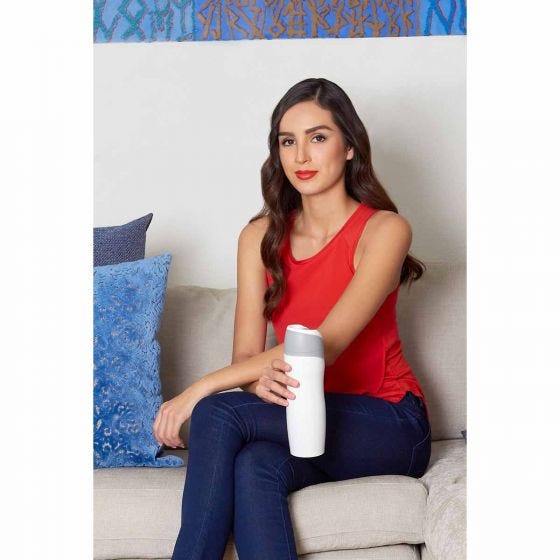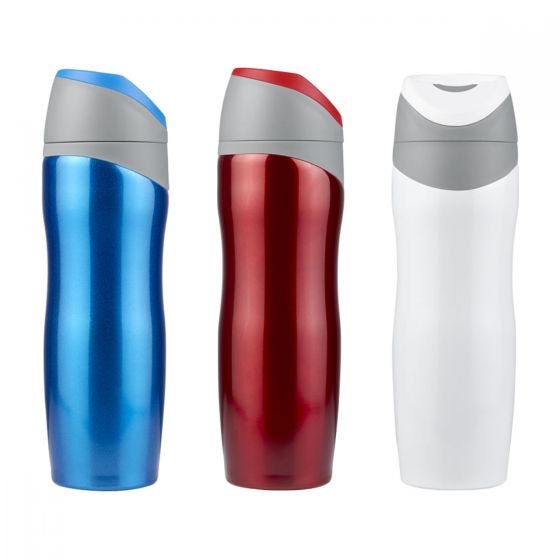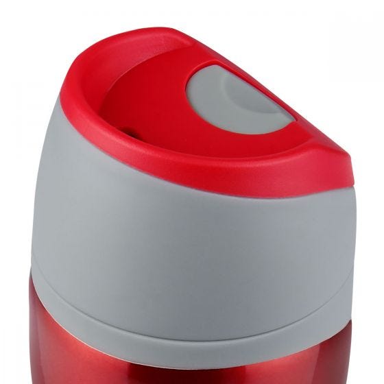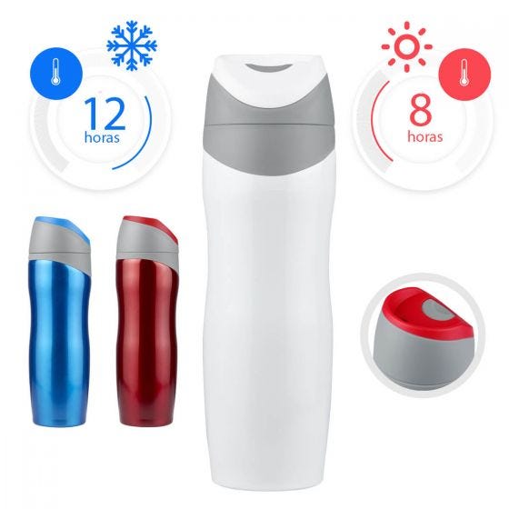 Doble pared. Cerrado al vacío. Pared interna y externa acero inoxidable, incluye botón pulsador para abrir y cerrar.