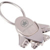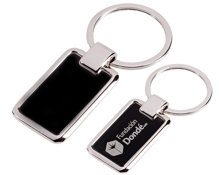 Llavero metálico con arillo reforzado y placa de metal color negro para grabado con frente esmerilado y reverso liso.