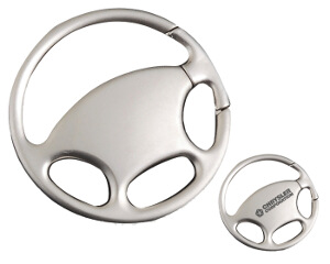 Llavero metálico en forma de volante, con apertura de click deslizable. Presentación: caja individual en color negro.