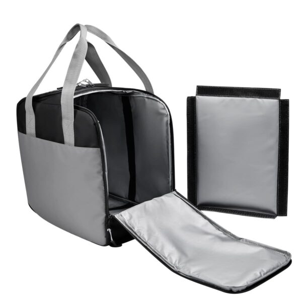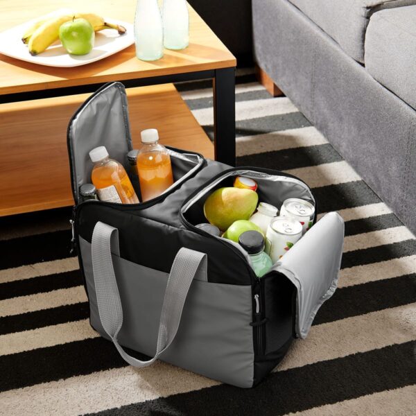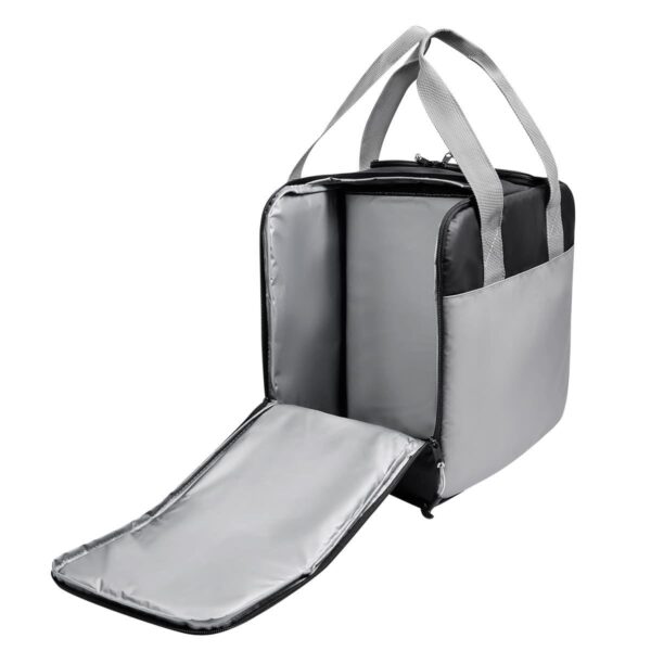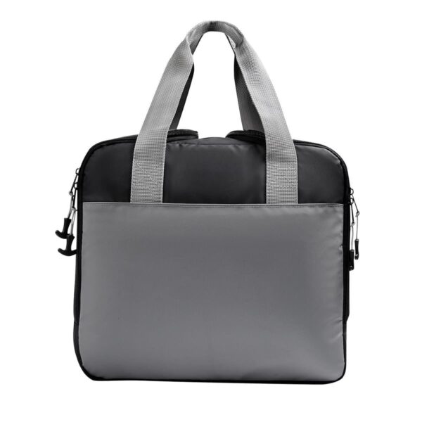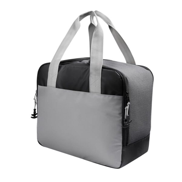 Lonchera con interior plástificado. Su compartimento principal incluye dos cierres independientes y un separador interno que permite utilizar cada espacio por separado. Incluye broches de velcro que permite retirarlo facilmente y obtener así mayor espacio. Bolsa frontal con cierre de velcro y asas de mano.