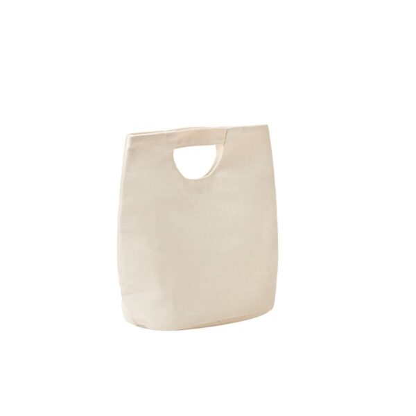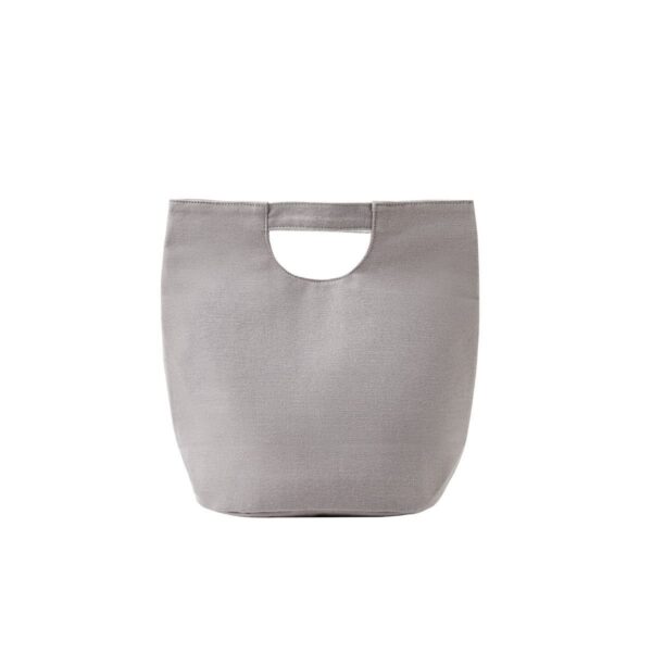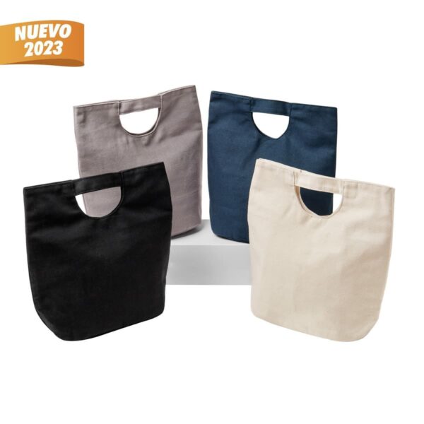Lonchera con asa de mano y fuelle en la base. Incluye broche de imantado para cerrar. Interior metalizado.