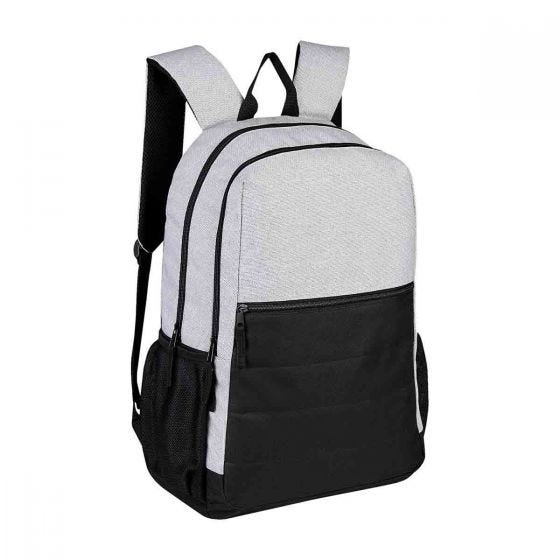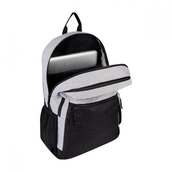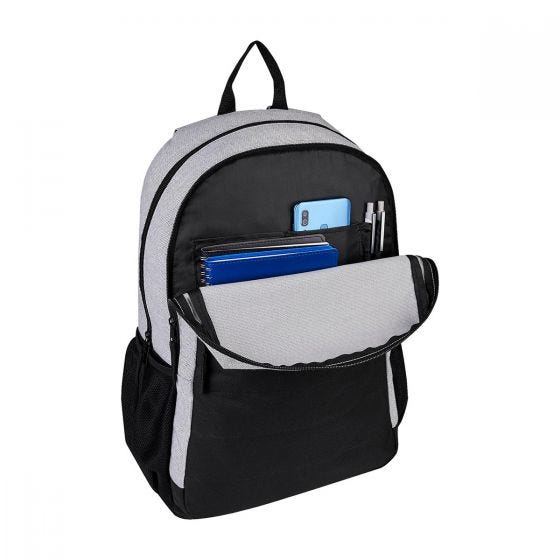 Bolsa principal con espacio para laptop y tablet, bolsa con organizador, bolsa frontal con cierre, 2 bolsas laterales de red, espalda y tirantes acojinados.