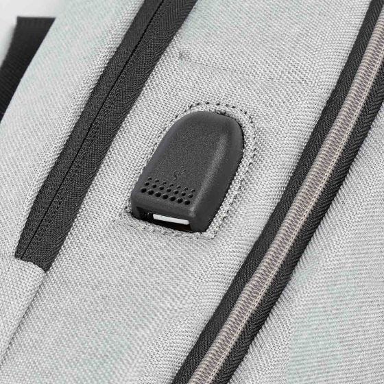 Mochila con salida USB (se requiere conectar a batería portátil) para cargar smartphone. Bolsa principal con organizador y compartimento interno para laptop y tablet. 2 Bolsas frontales con cierre, una con cierre interno para fácil bordado. Aditamento especial trasero para poner en trolley. Tirantes acojinados.
