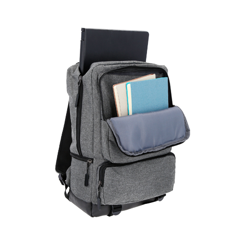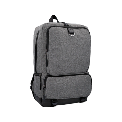 Mochila con salida USB (se requiere conectar a batería portátil), con correas ajustables acojinadas y asa. Cuenta con 7 compartimentos: compartimento interno para laptop, compartimento principal, compartimento interno para power bank, 2 bolsas frontales y 2 compartimentos laterales.