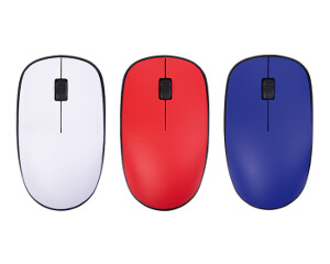 Mouse inalámbrico, con compartimento para guardar control USB a distancia y botón de scroll. Utiliza dos pilas alcalinas AAA incluidas. Presentación: caja en color blanco.