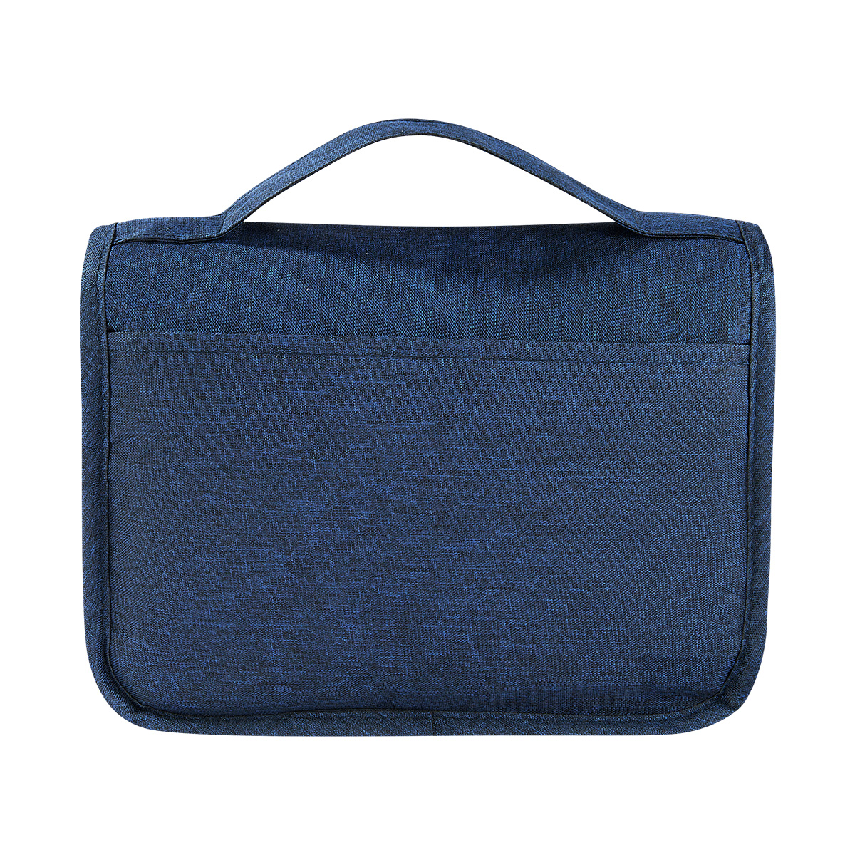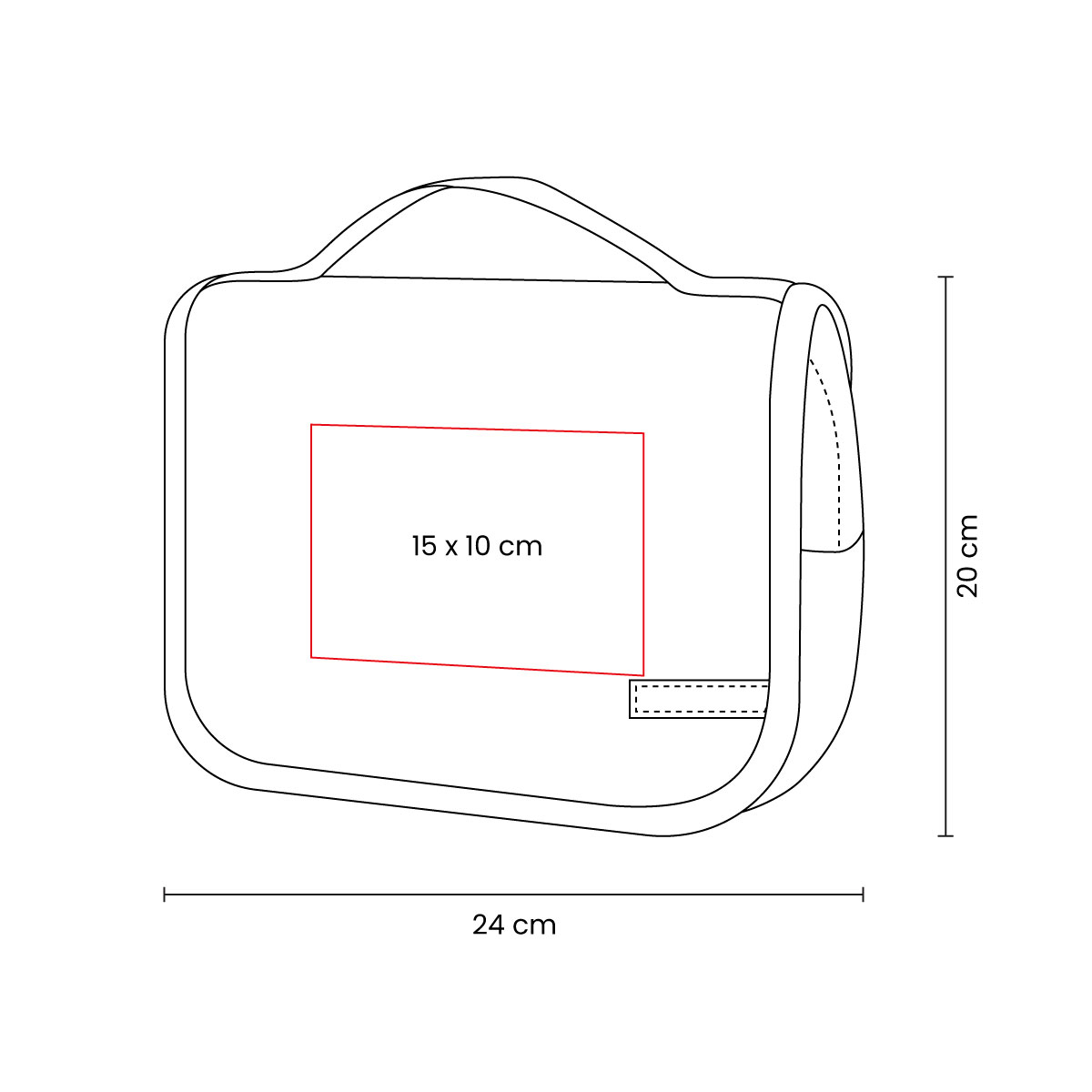 Organizador con cierre de velcro. Compartimento principal con cierre, elásticos internos, separadores de tela para una mejor organización de artículos personales y material de malla para su ventilación. Incluye bolsillo frontal con cierre, bolsillo superior impermeable, gancho de plástico para colgar, bolsillo en la parte posterior y asa superior.