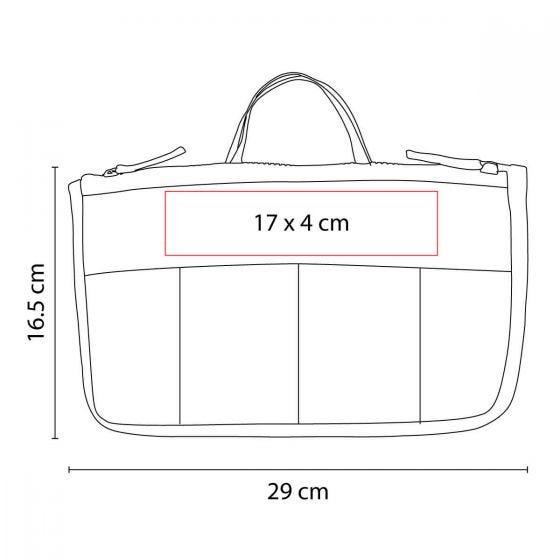 Bolsa central y 2 laterales con cierre. 4 Bolsas de malla en la parte frontal. 2 Compartimentos y 2 bolsas de malla en la parte trasera.