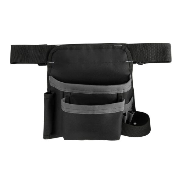 Bolsa para herramientas ideal para sostener y tener acceso rápido a destornilladores, llaves, cintas, martillo, pinzas etc… Incluye 5 compartimientos, 1 porta martillo y cinturón ajustable con broche de plástico.