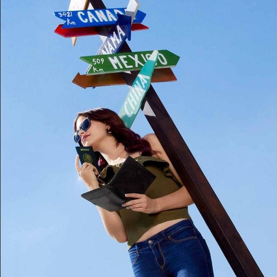 Compartimento para visa, pasaporte, boleto de avión y tarjeta de crédito.