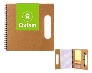 Portafolios ecológico con libreta de espiral metálico. Incluye pluma de papel reciclado y notas adhesivas.