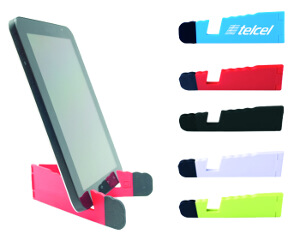 Base plegable de plástico para celulares y tablets, ajustable a cualquier modelo y tamaño. esquinas de silicón para una mejor adhesión de las superficies y seguridad de los equipos.