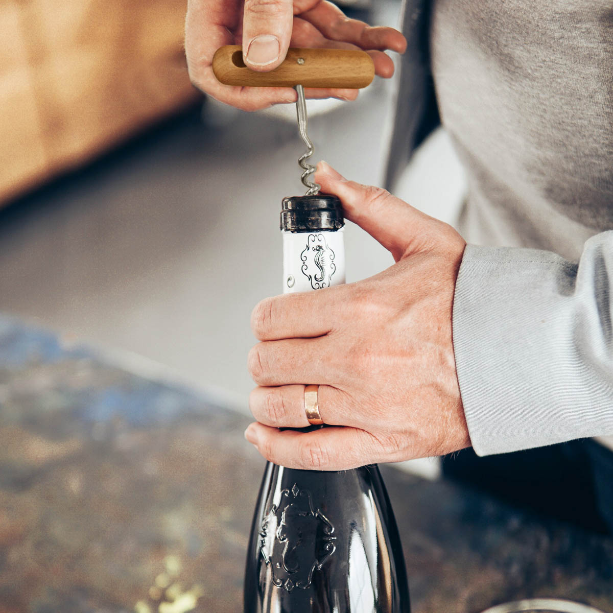 Sacacorchos de madera con espiral metálico de acero inoxidable. Su diseño ergonómico y minimalista proporciona una experiencia de uso sin complicaciones, permitiéndote abrir tus botellas con facilidad. Fabricado con materiales ligeros y resistentes. Cuenta con un práctico orificio para colgarlo, lo que te permite mantenerlo al alcance de la mano en todo momento.