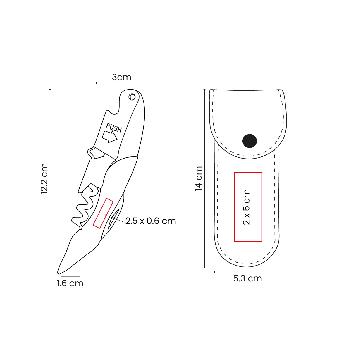 | Medida | 3 x 12.2 x 1.6 cm Sacacorchos / 5.3 x 14 cm Funda |