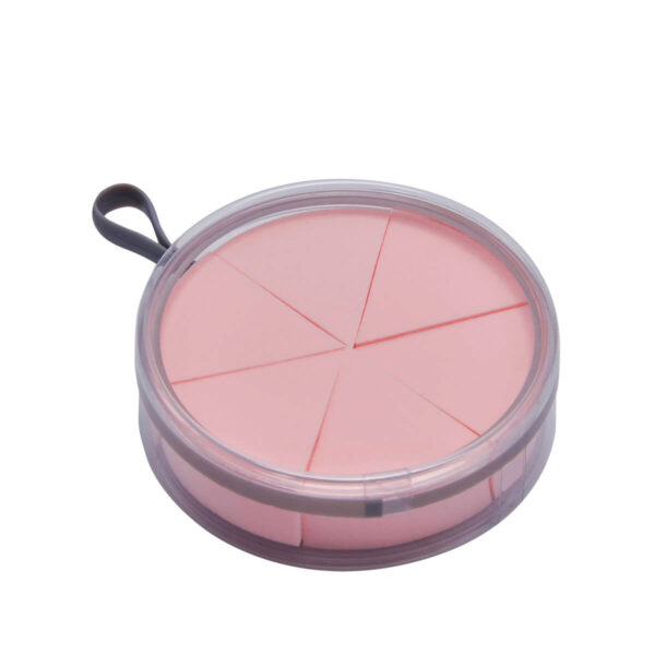 Estuche con 6 esponjas para maquillaje. Las esponjas tienen forma de cuña para una fácil aplicación de maquillaje o corrector líquido y en crema. Tienen una textura suave y absorbente al agua. Pueden utilizarse húmedas o en seco.