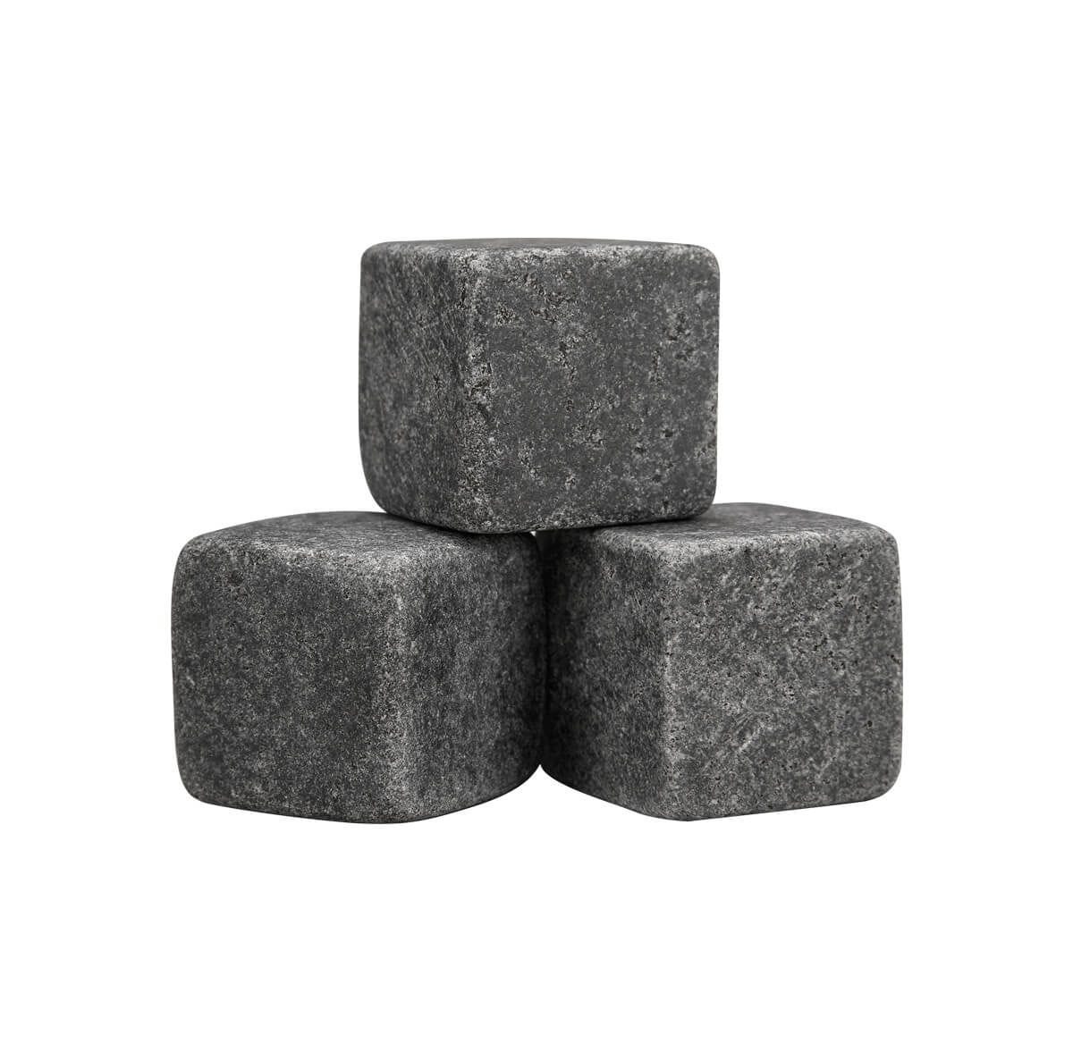 Set de bar. Incluye vaso de cristal, 3 enfriadores de piedra y estuche de madera.